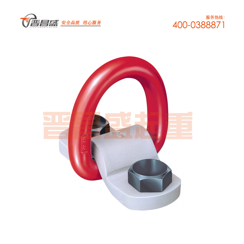 用螺栓與吊裝件連接的吊環(huán),承載能力為3~8T,堅固的結構4倍的安全系數,吊環(huán)可以180°傾斜,螺栓連接板也作為標志板。