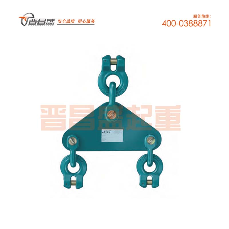 下面提到的額定載荷是對(duì)使用雙肢鏈有效的,必須是對(duì)稱的分布。雙肢鏈條一端安裝到吊板,另一端安裝吊鉤。