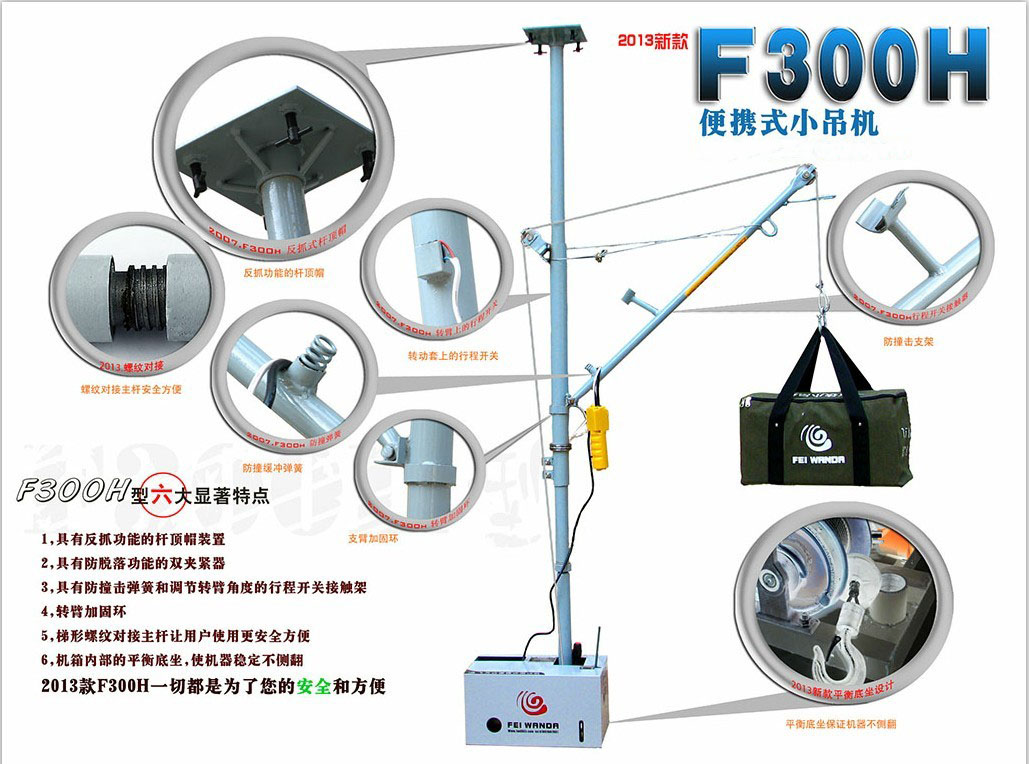 便攜式小吊機產(chǎn)品介紹 1、具有反抓功能的桿頂帽裝置 2、具有防脫落功能的雙夾緊器 3、轉(zhuǎn)臂加固環(huán) 4、梯形螺紋對接主桿讓用戶使用更安全方便 5、機箱內(nèi)部的平衡底坐,使機器穩(wěn)定不側(cè)翻