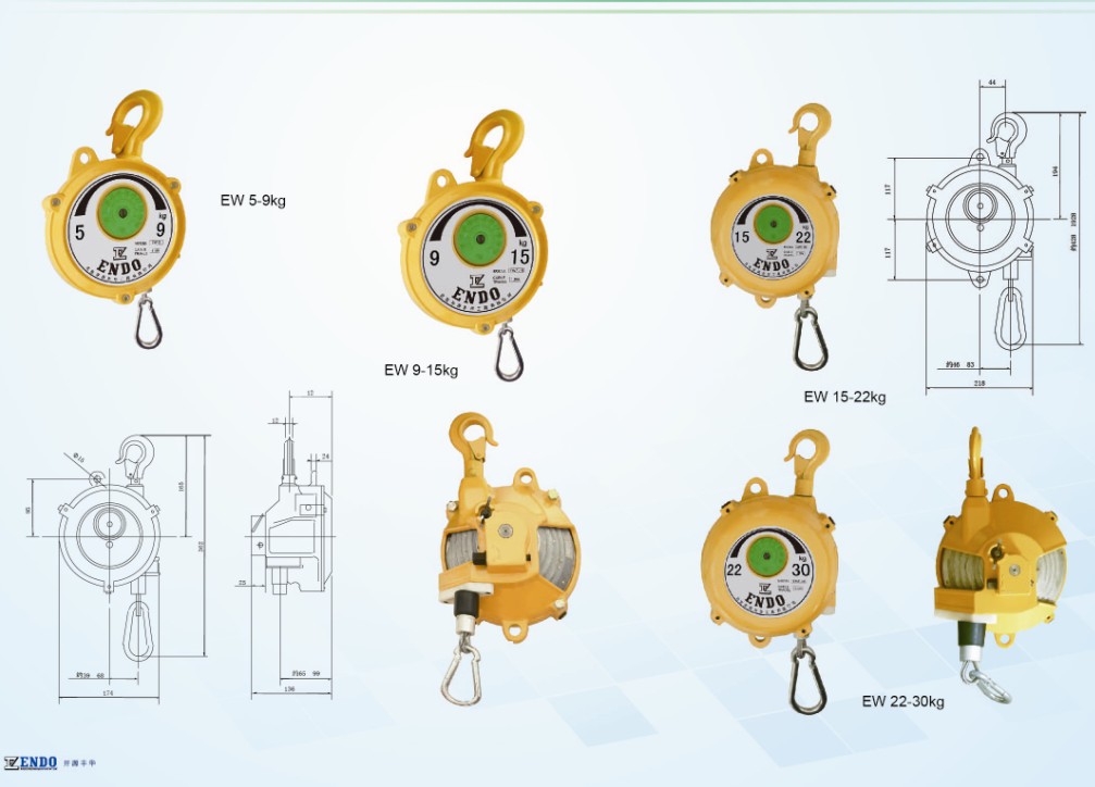 日本遠藤彈簧平衡器是一種機械操作時使用的輔助工具,主要運用在工廠車間的流水生產(chǎn)線上,日本遠藤彈簧平衡器主要借助拉簧的力量使所懸掛的被吊物體處于無重狀態(tài),從而減少勞動強度,增加工作效率,降低您的生產(chǎn)成本,日本遠藤彈簧平衡器是工廠流水線不可缺少的工具之一。 1、平衡器可改進工作效率和減少操作者疲勞。 2、平衡器可使工具的位置穩(wěn)定,有助于精確工作。 3、平衡器可用來保持工具的潔凈。 4、無需電源或空氣源,實現(xiàn)安全工作。 5、封閉式殼體及纜繩導向裝置可防止夾手指事故及擦傷殼體。