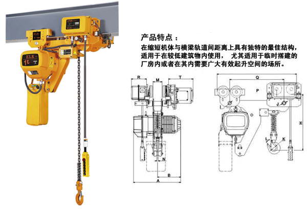 在縮短機體與橫梁軌道間距離上具有獨特的最佳結(jié)構(gòu),適用于在較低建筑物內(nèi)使用,尤其適用于臨時搭建的廠房內(nèi)或者在其內(nèi)需要擴大有效起升空間的場所。