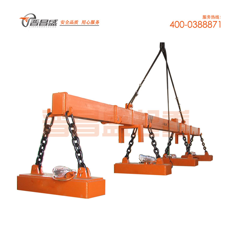 本系列產(chǎn)品是專為吊運中厚鋼板而設計的。吊運作業(yè)安全準確迅速??紤]到長鋼板吊運可能出現(xiàn)彎曲變形而影響安全搬運,所以在吊運長尺寸鋼板時,請使用多臺電磁鐵聯(lián)用。對于中厚板(6mm-32mm)電磁鐵的間距多取3-4米,兩端外伸部分的長度可取間距的二分之一。根據(jù)吊運張數(shù)的不同,又分為350型與400型兩類。350型適合于中厚板廠、造船廠、機械制造廠,采用調(diào)磁控制方式,能起吊一張或一定張數(shù)鋼板。400型適用于一次搬運盡量多的張數(shù),可根據(jù)用戶要求另行設計制造吊運700℃以下鋼板用高溫型產(chǎn)品。