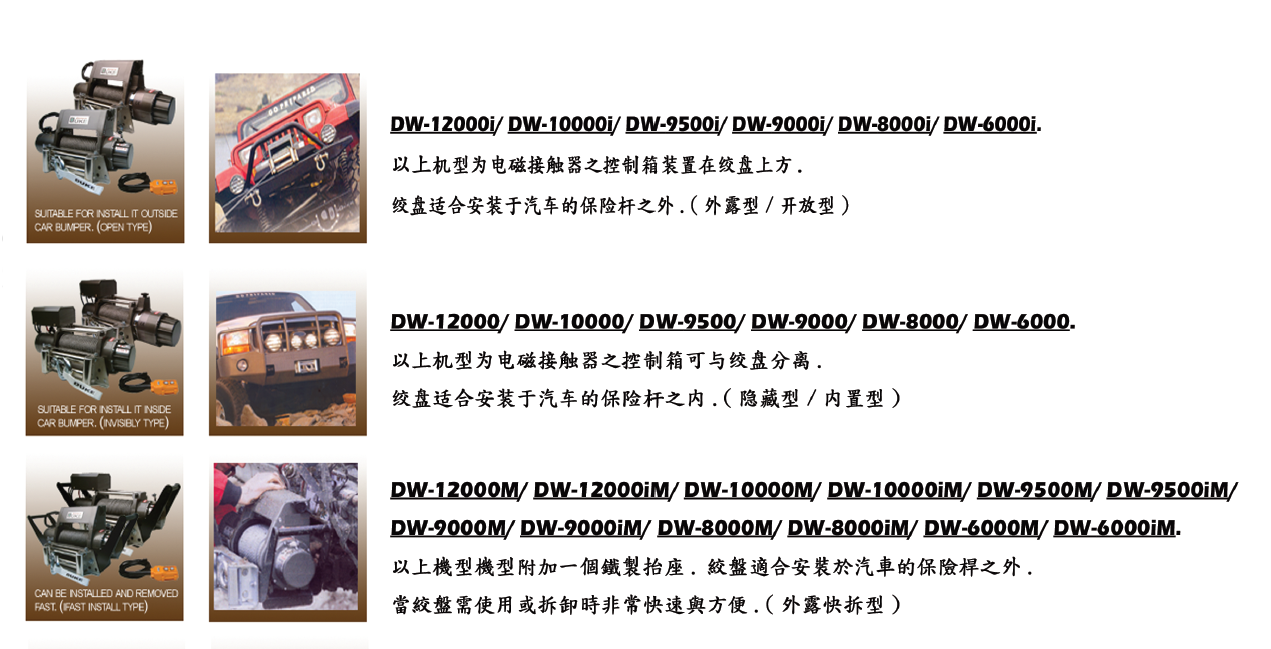 汽車絞盤主要用于越野汽車、農(nóng)用汽車、ATV運動車、艇游、以及其它特別車輛,是車輛、船只自我保護及牽引的裝置??稍谘┑?、沼澤、沙漠、海灘、泥濘山路等惡劣環(huán)境中進行車輛自救,并可能在其它條件下,進行清障、拖拉物品、安裝設施等作業(yè),是軍警、石油、水文、環(huán)保、林業(yè)、交通、公安、邊防、消防及其它野外運動不可缺少的安全裝置。